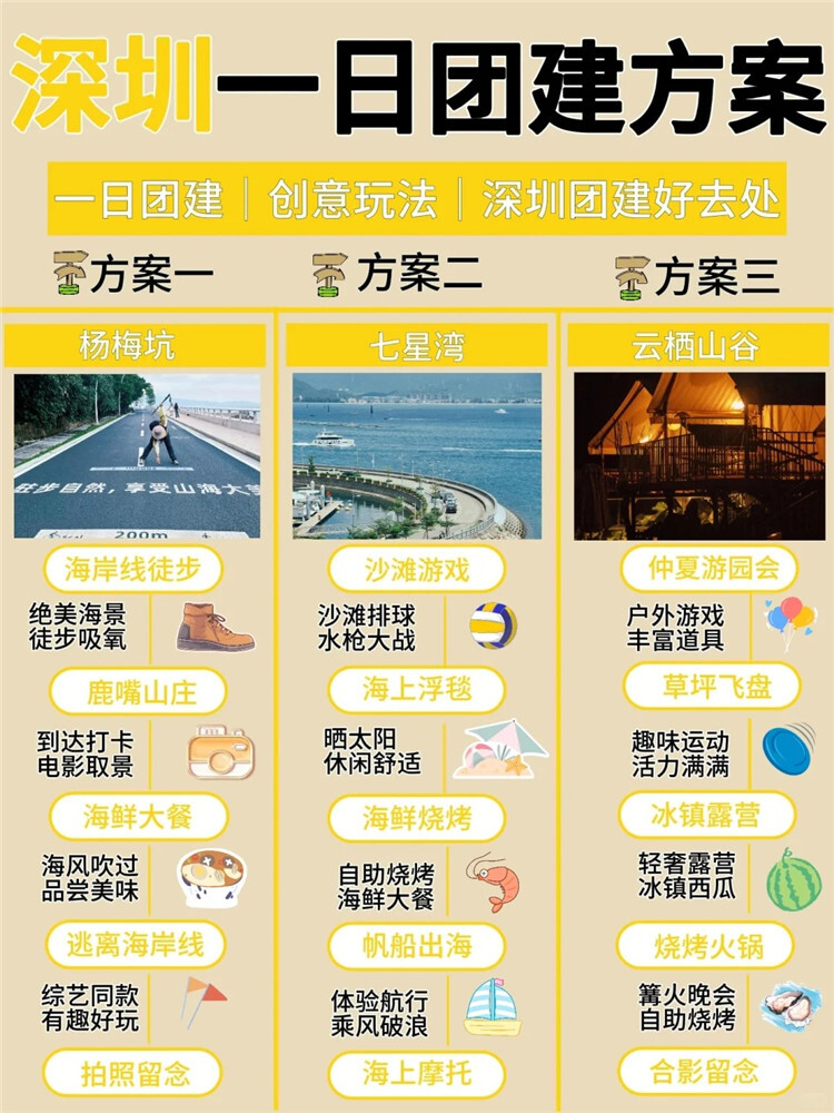 團建還在吃飯唱歌走過場?員工參與度低,領導直搖頭?在快節奏、高密度的深圳企業生態中,員工期待值水漲船高,傳統拓展早已無法滿足年輕團隊對“即走即用”且富有深度體驗的渴望。一天時間,如何讓團隊真正“嗨”起來、連起來、燃起來? ...