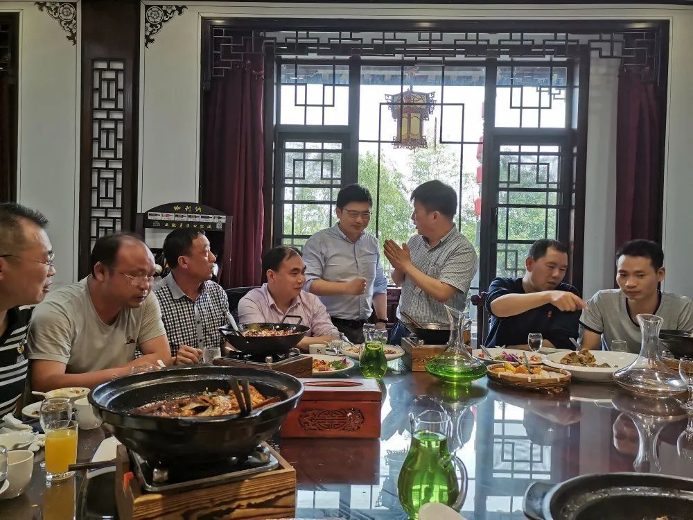 好景自然少不了美食相伴。結束游覽之后,團隊一行人來到當地土菜館就餐。濃濃的佳釀擺放在餐桌上方,載著無限的暖意。席間,岳總和大家一起嘮家常,講趣事,談笑風生,氣氛融洽。