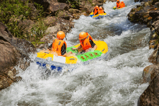 全長有6350m的國際頂級賽道,這——么長的漂流整個華南都十分罕見!猶如一條飛龍,穿梭于密林飛馳而下,翻越嵩山峻嶺,全程實在是驚險刺激!被譽為“中國漂流神話”、 “全球漂流之霸”,漂流賽道由國際漂流專家精心設計,渾然天成。
