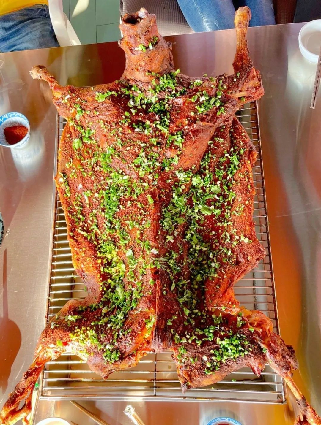 披著晚霞,在萬(wàn)峰林納灰河畔的納錄花海進(jìn)行了長(zhǎng)桌宴,吃烤全羊,暢飲貴州美酒。