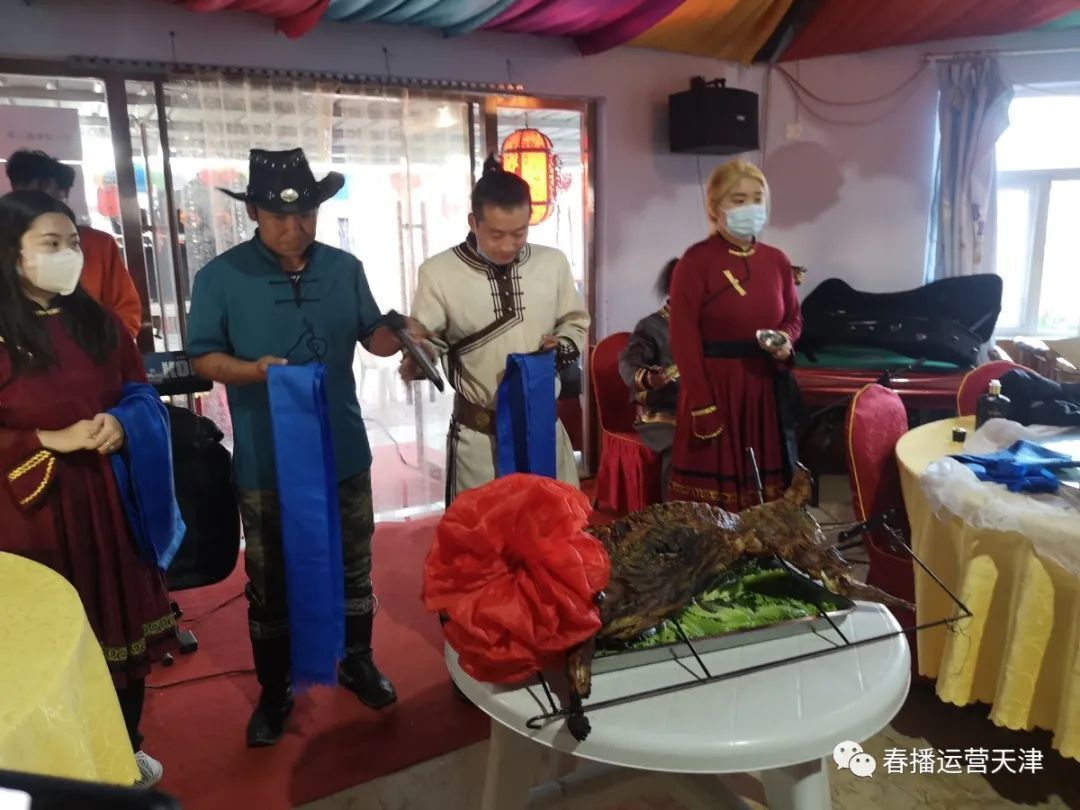 晚上回到蒙古包,當地牧民精心準備了烤全羊,請最尊貴的客人春播運營平臺天津省總經理董澤輝和副總經理劉寶娜共同為宴會進行開羊儀式!