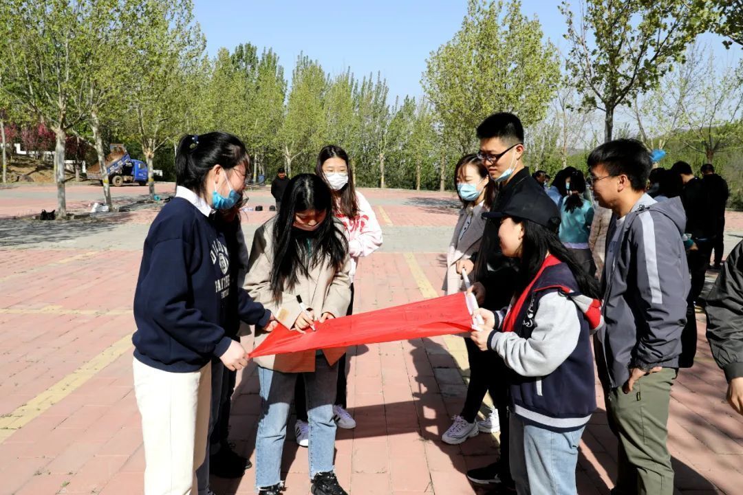 熱身完畢,教師們在團建公司教練的安排下,迅速分組成立新的團隊。各組成員積極參與,施展特長,確定團隊名稱、口號,繪制隊旗,信心滿滿地迎接挑戰(zhàn)。