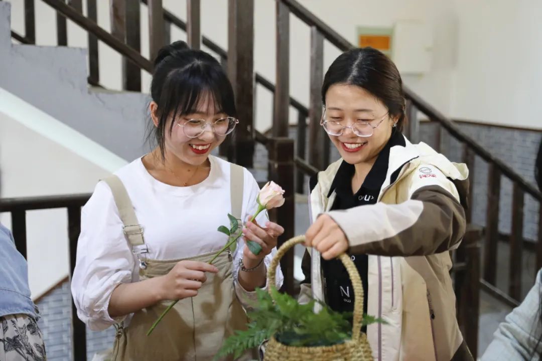 平日忙于教學(xué)工作的老師們,這一天很難得親身體驗了一次插花的魅力。應(yīng)季花材、葉材數(shù)十種,手提花盒、花籃、絲帶、剪刀一應(yīng)俱全,老師們?nèi)齼蓛蓢狼埃F(xiàn)學(xué)現(xiàn)做,親自動手,把自己內(nèi)心深處的美一刀一剪、一枝一蔓地呈現(xiàn)為一個個絢麗的花籃。