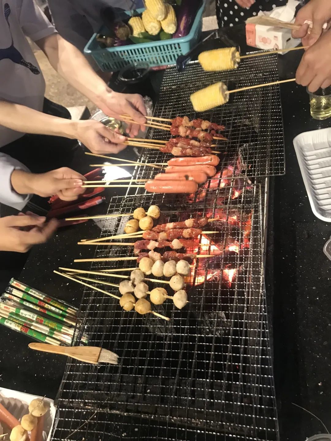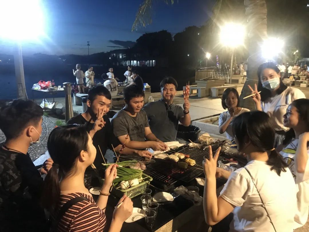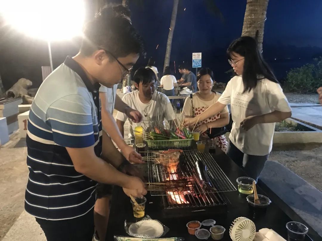 欣賞完落日的美景,大家前往沙灘,領(lǐng)取食材后,分為三組動(dòng)手燒烤。女生負(fù)責(zé)清洗食材、穿上簽子,男生負(fù)責(zé)燒烤,烤肉的香氣讓大家更加饑腸轆轆,美中不足的是燒烤調(diào)料種類較少,最后只能憑借小伙伴們高超的燒烤技術(shù)拯救這一頓晚餐。