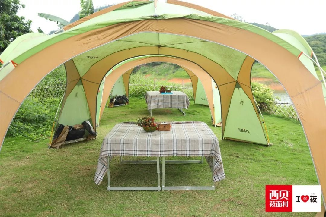在無序中獲得有序,就地取材摘一碗新鮮水靈的荔枝,搭起帳篷、架起桌子、鋪好桌布,度假感立刻襲來~