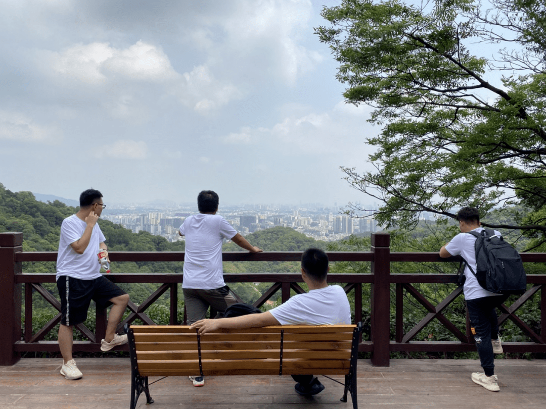白云山,位于廣東省廣州市白云區,為南粵名山之一,自古就有“羊城第一秀”之稱。山體相當寬闊,呈東北西南走向,東西寬約4公里,南北長約7公里,由30多座山峰組成,為廣東最高峰九連山的支脈,面積20.98平方公里,主峰摩星嶺高382米。此次團建活動的第一項內容,就是以團隊為單位征服白云山,在每組展示自己響亮的挑戰宣言后,三個小組以團隊為單位開始登山。