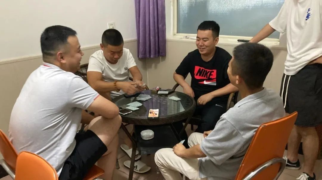 還有幾個愛玩撲克的在房間玩撲克,還有打乒乓球愛好者......