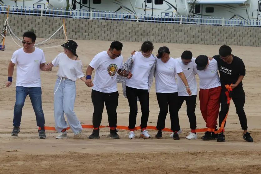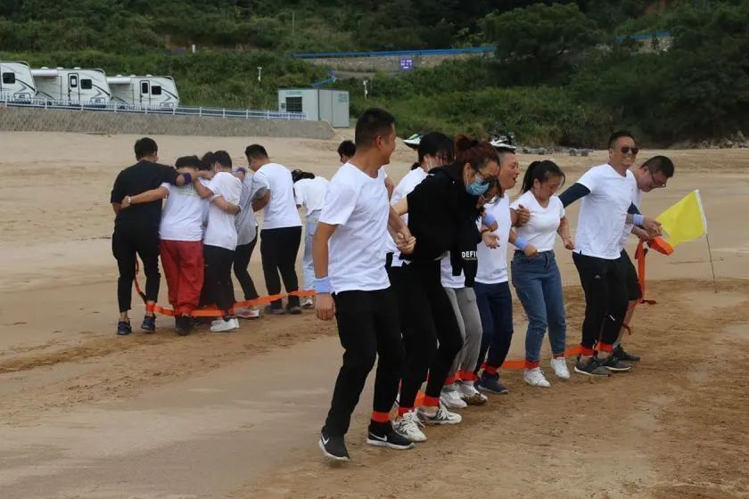 元氣滿滿,激情有FUN,沙灘趣味運動會高燃來襲,在暖場熱身小游戲后,大家被分為6組小團隊進行PK對決,隊員之間通過設計隊旗、隊名、口號等環節,更加熟悉了彼此,還協作擺出了一系列創意團隊照。