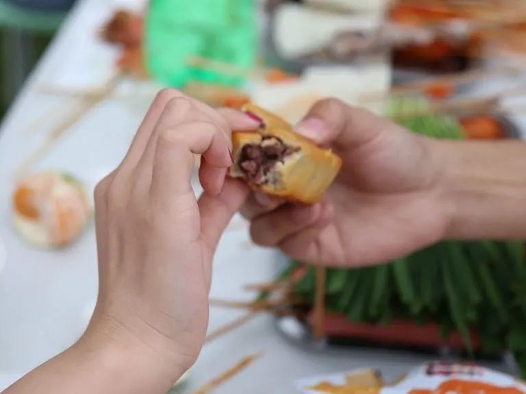 吃貨們被彌漫周圍的烤肉香引得口水直流,情誼也隨著縷縷炊煙逐漸升華。大家圍坐在一起,津津有味地品嘗著自己的勞動成果,簡直是人間美味!