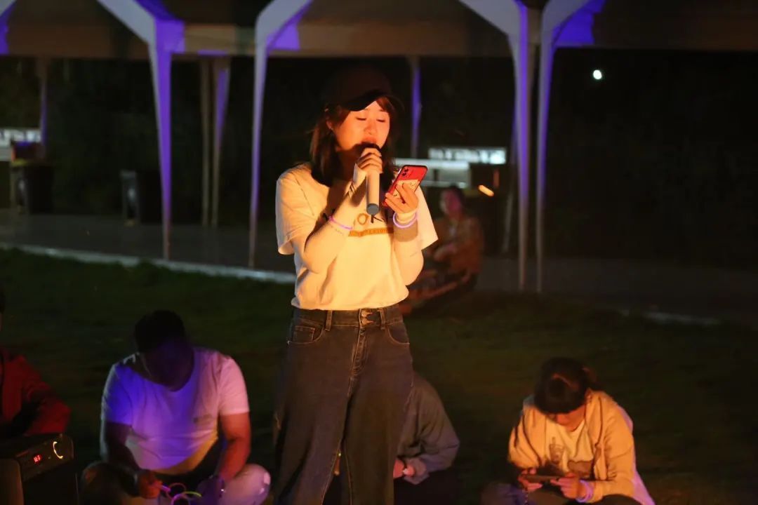 小伙伴們手拿熒光棒盤坐在草地上,刺激緊張的小游戲和精彩絕倫的節目表演,讓歡快的氣息充斥著整個沙灘。