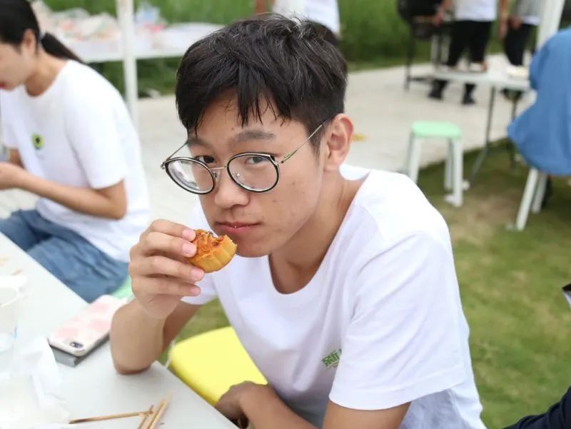 燒烤后大家坐在一起談天說地,一起共享來自育才大酒店的中秋月餅,熱熱鬧鬧地迎接夜幕降臨。