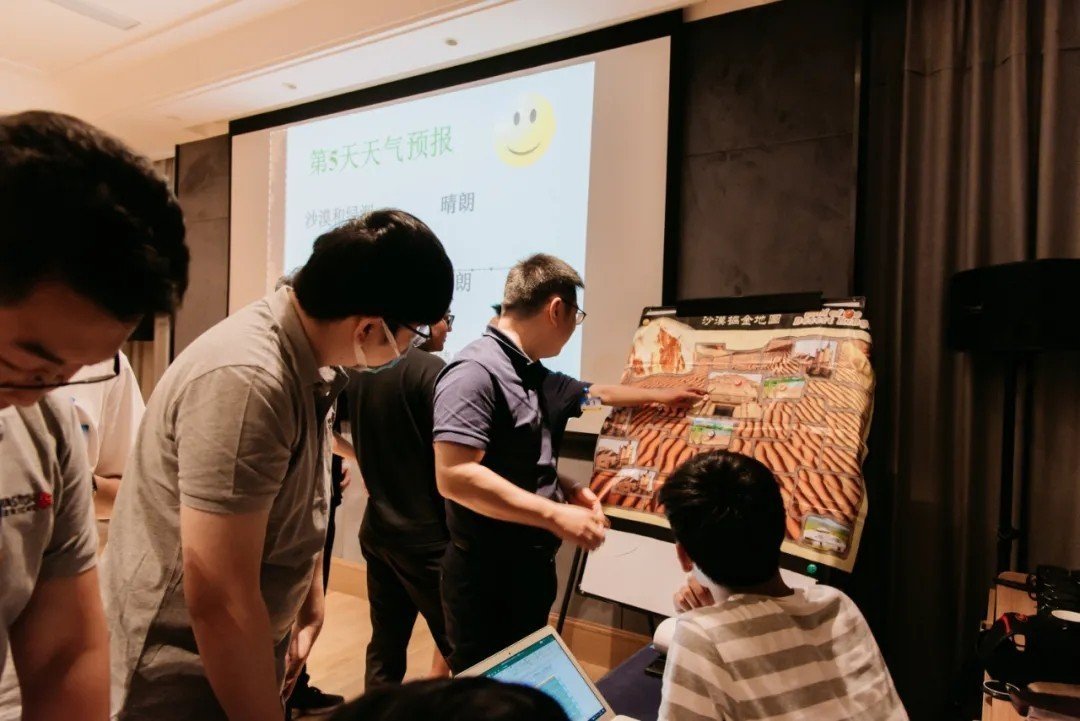 沙漠掘金團建活動,團隊成員分組組成探險隊之后,每隊都會得到相同的預備金,用于購買水、食物、指南針、帳篷等物資組成沙漠駝隊,然后從大本營出發,深入沙漠深處挖掘黃金。