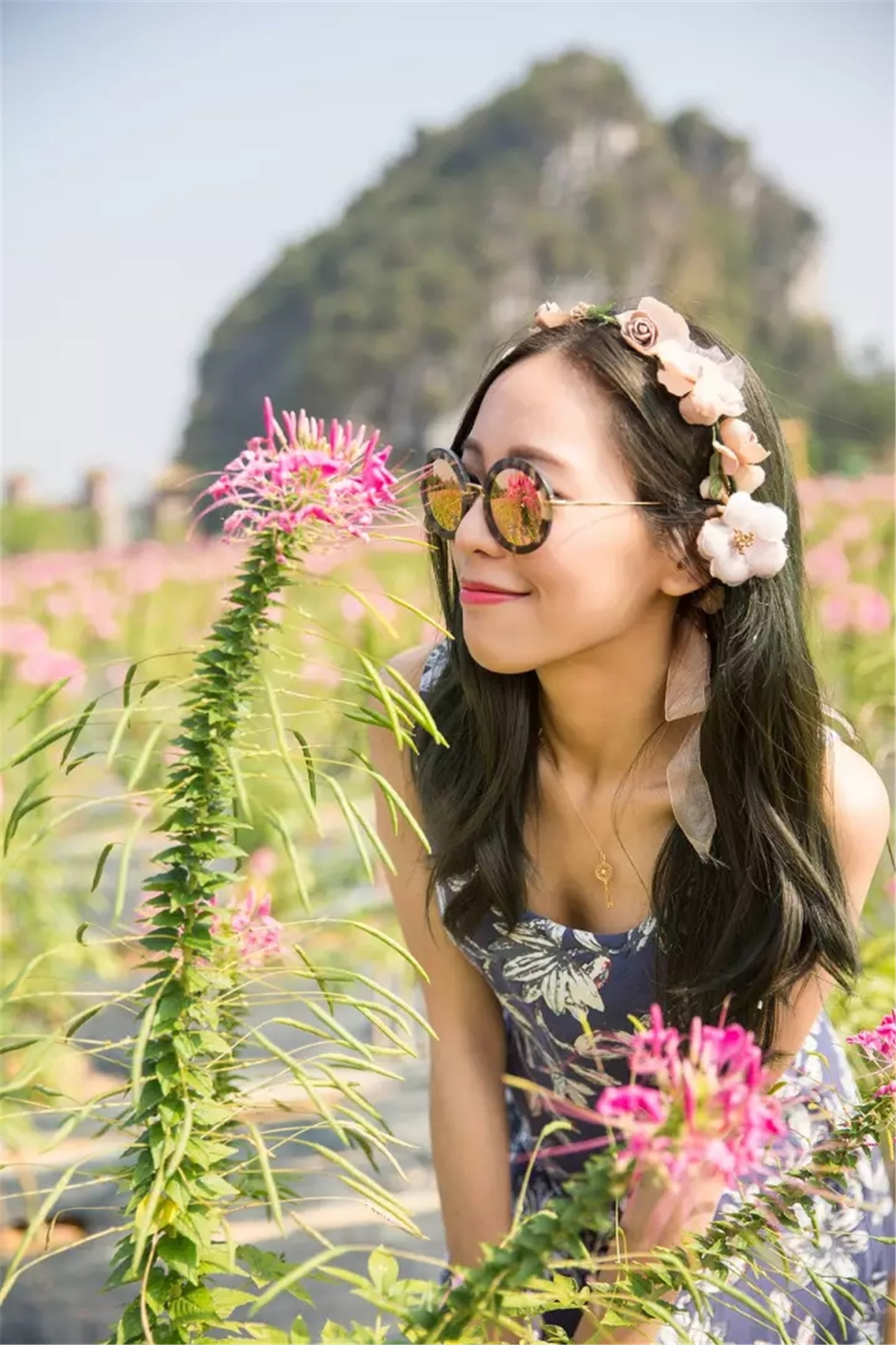 峰林小鎮一望無際醉蝶花海,與峰林地貌,竹制小屋,組成了一幅幅最美鄉村風景畫。成片的花海,站在其中,不遠處數百座山峰起伏連綿、重巒疊嶂,這一刻,美到無所適從,讓人喜歡得不得了!