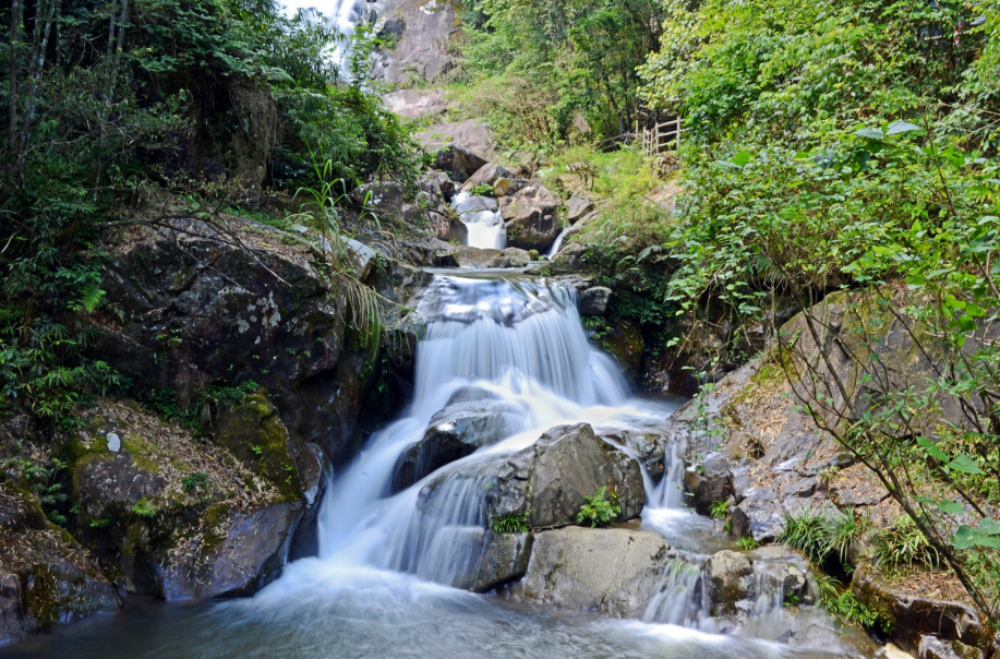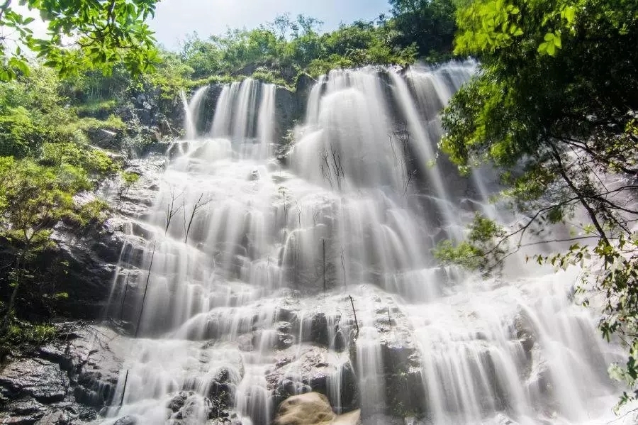 千瀧溝大瀑布位于廣州從化區(qū),從化山高林密,古木參天,水源充足,流溪河水深河闊,兩岸風(fēng)光如畫。傳說八仙曾來從化造城,留下雞罾山等美麗故事。在千瀧溝,至今留有一個仙人腳印。