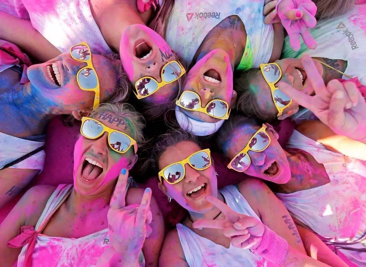 彩虹跑也叫彩色跑(The Color Run),是一項被稱為“地球上最快樂的5公里賽跑”,參加者身著白色T恤,跑步過程中經(jīng)過不同的彩色站,會被從頭到腳拋撒彩色粉末。據(jù)悉,彩色粉末由純天然玉米粉制成,對人體和環(huán)境無害。