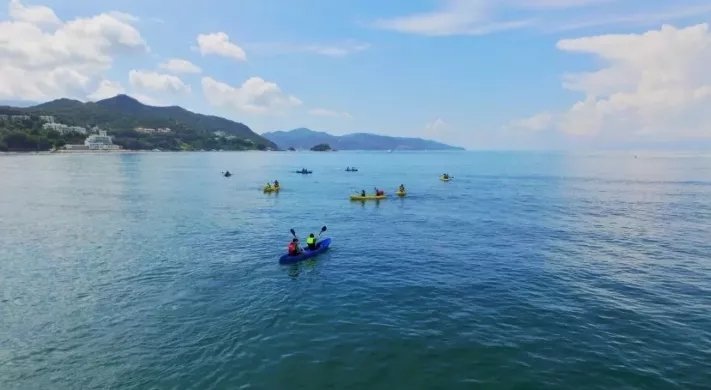 金沙灣是集水質(zhì)好、景色美、運(yùn)動項(xiàng)目齊全為一體的海灘,三面青山環(huán)抱,一面碧波萬頃,還是知名綜藝節(jié)目《高能少年團(tuán)》的取景地。