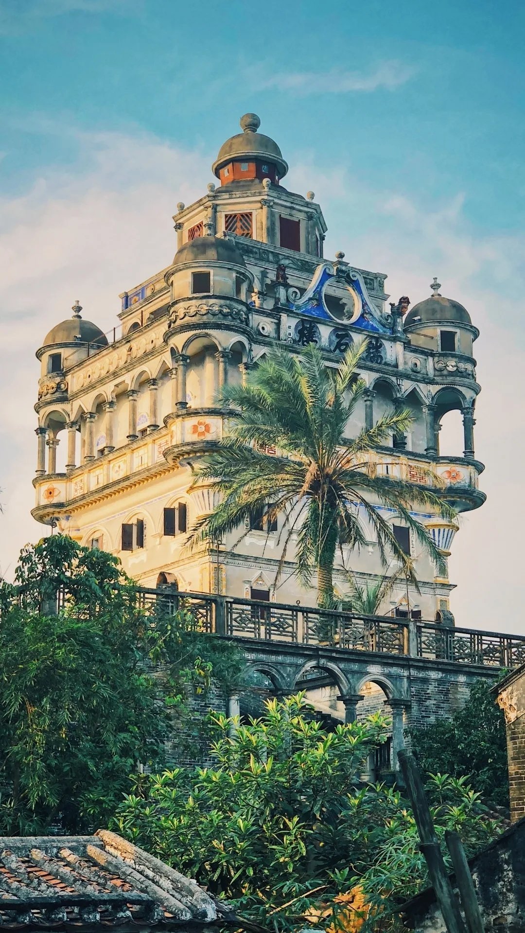 其上部雕梁畫(huà)棟,底部幾層卻如方筒筆直,歐洲各時(shí)期建筑風(fēng)格與嶺南傳統(tǒng)建筑形式,交融共存,相得益彰。