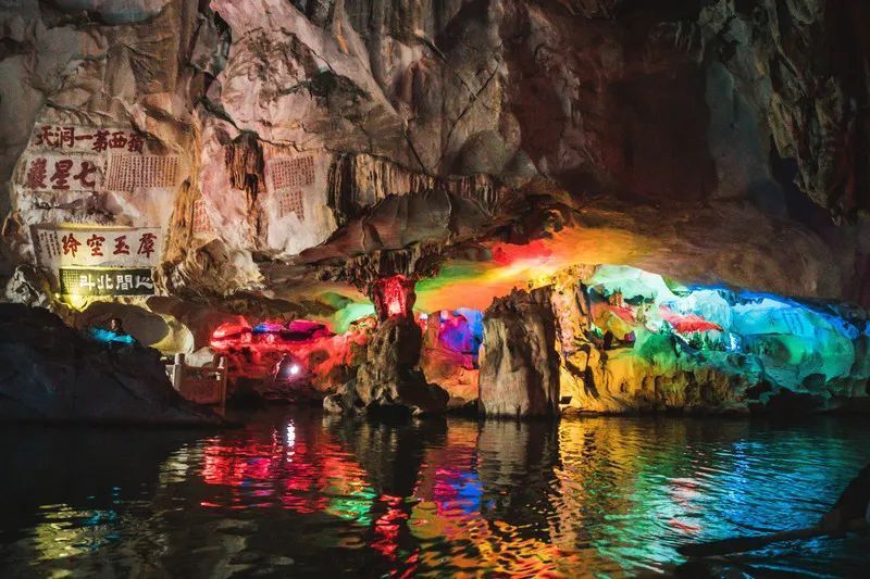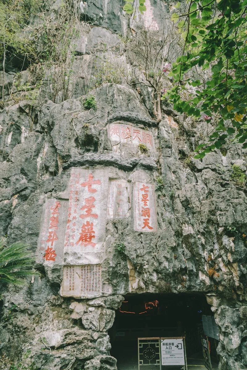 除了限定版的春色,七星巖景區可看的地方還有很多,五湖、六崗、七巖、八洞,面面俱到也不現實,于是我們專心挑了三個地方逛:一是步行參觀水月宮,一是乘船游龍巖洞,一是攀爬天柱巖。