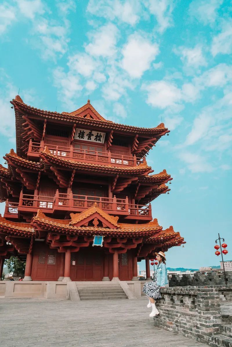 沿著城墻繼續往前走,便能看見披云樓,樓高三層,很有種滕王閣的氣勢,因樓矗立在城墻最高處常有云霧常繞,所以得名,古時被用于瞭望之用,歷代重建不斷增起建制,便有了今天的規模。