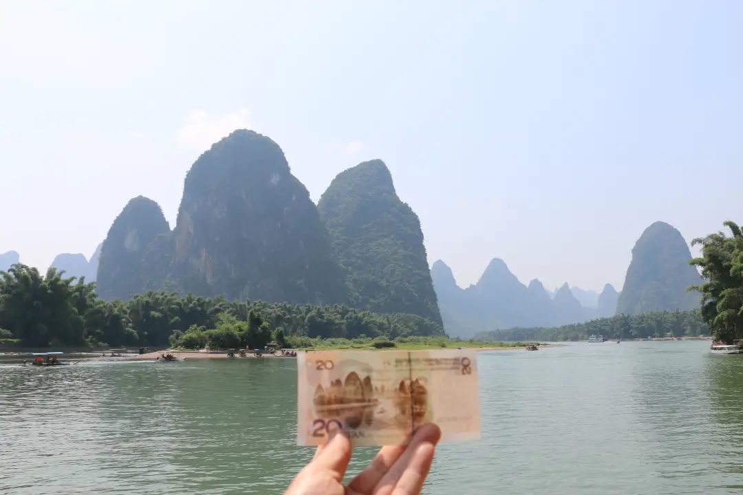 打卡20元人民幣,興坪古鎮位于漓江東岸,漓江在此迂回而轉向流去,是我國20元面值人民幣背面的圖案所在地。