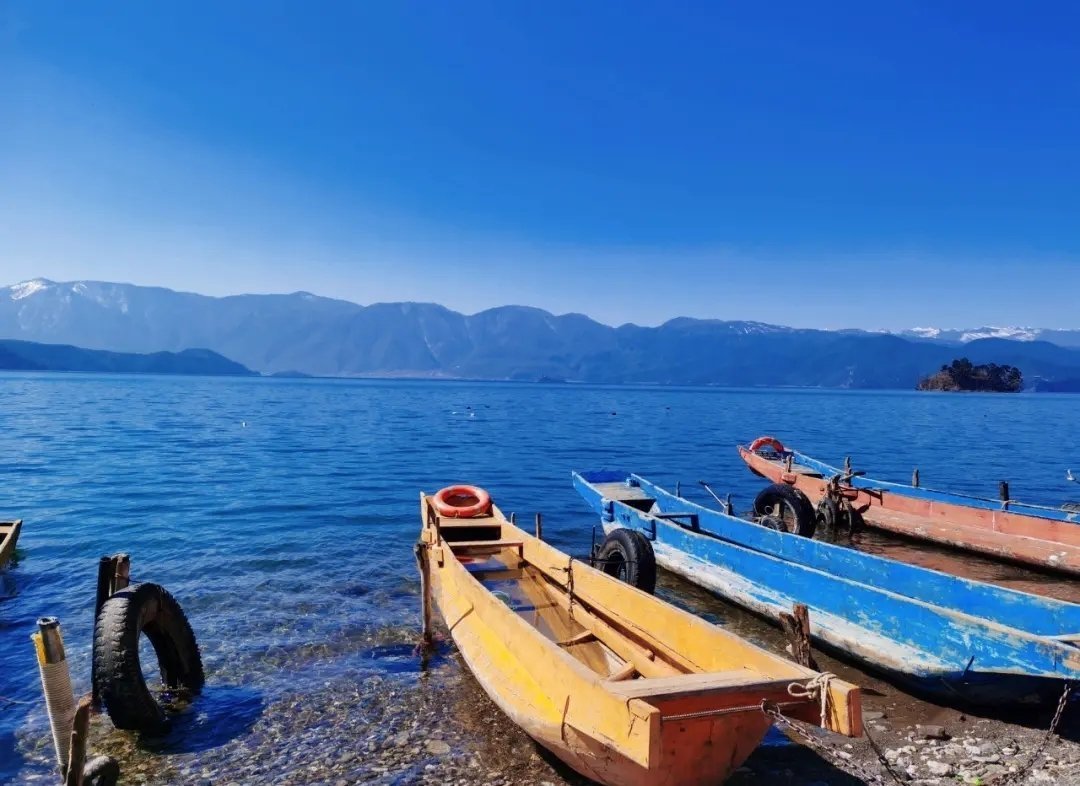 瀘沽湖,又名左索海,俗稱兩海,猶如一顆鑲嵌在高原上的藍寶石珍珠。清澈見底的湖水在陽光下蕩漾,像一面鏡子,像一顆鑲嵌在群山中的藍瑪瑙,將所有的美景展現在眼前。