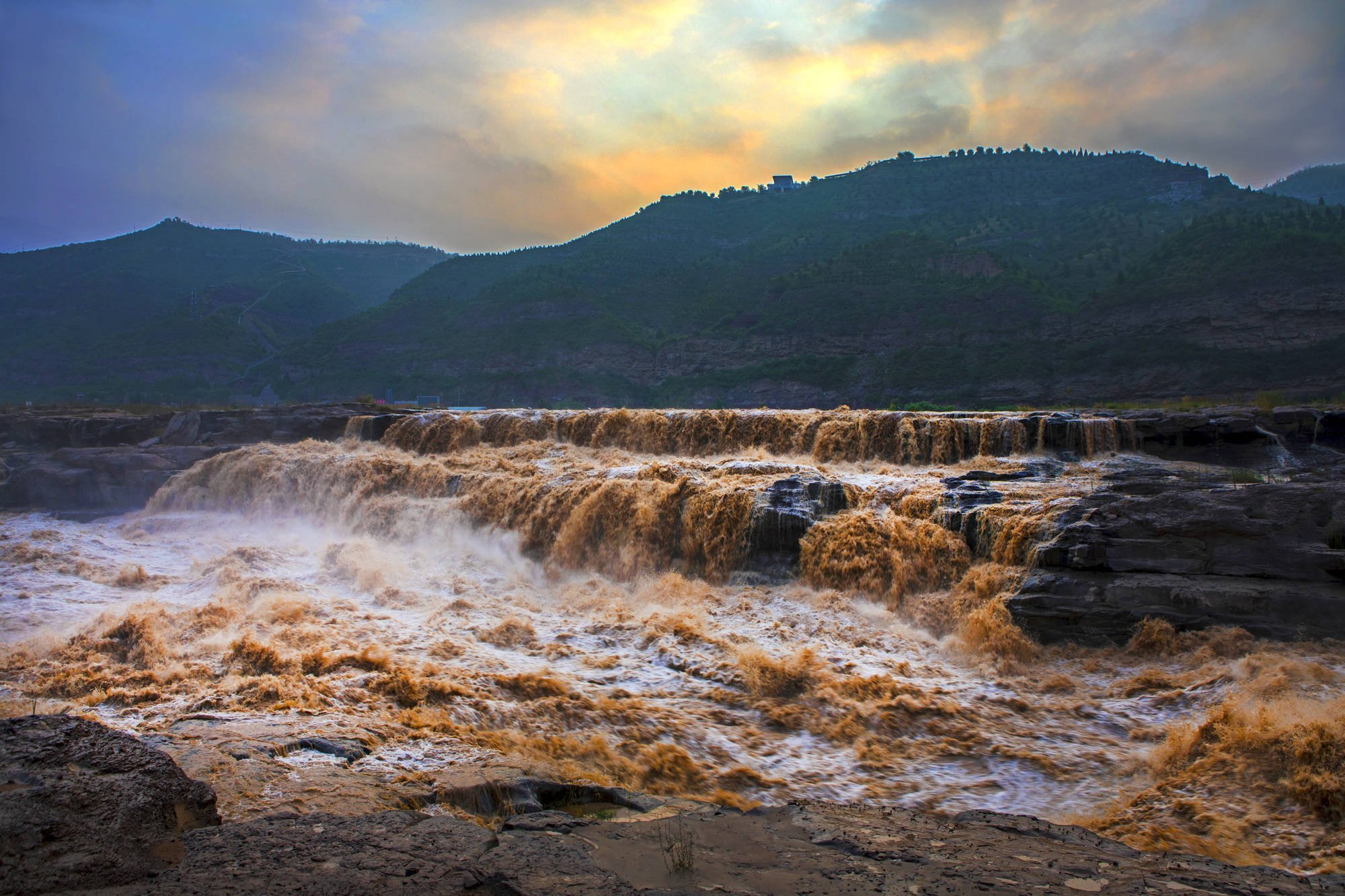 萬里黃龍從億萬年深處奔騰而來,一路歌聲驚醒沉睡的黃土巨大的浪濤,在形成的落差注入谷底后,激起一團團水霧煙云,景色分外奇麗。“風在吼,馬在叫,黃河在咆哮”那激流的水聲就是黃河的咆哮。