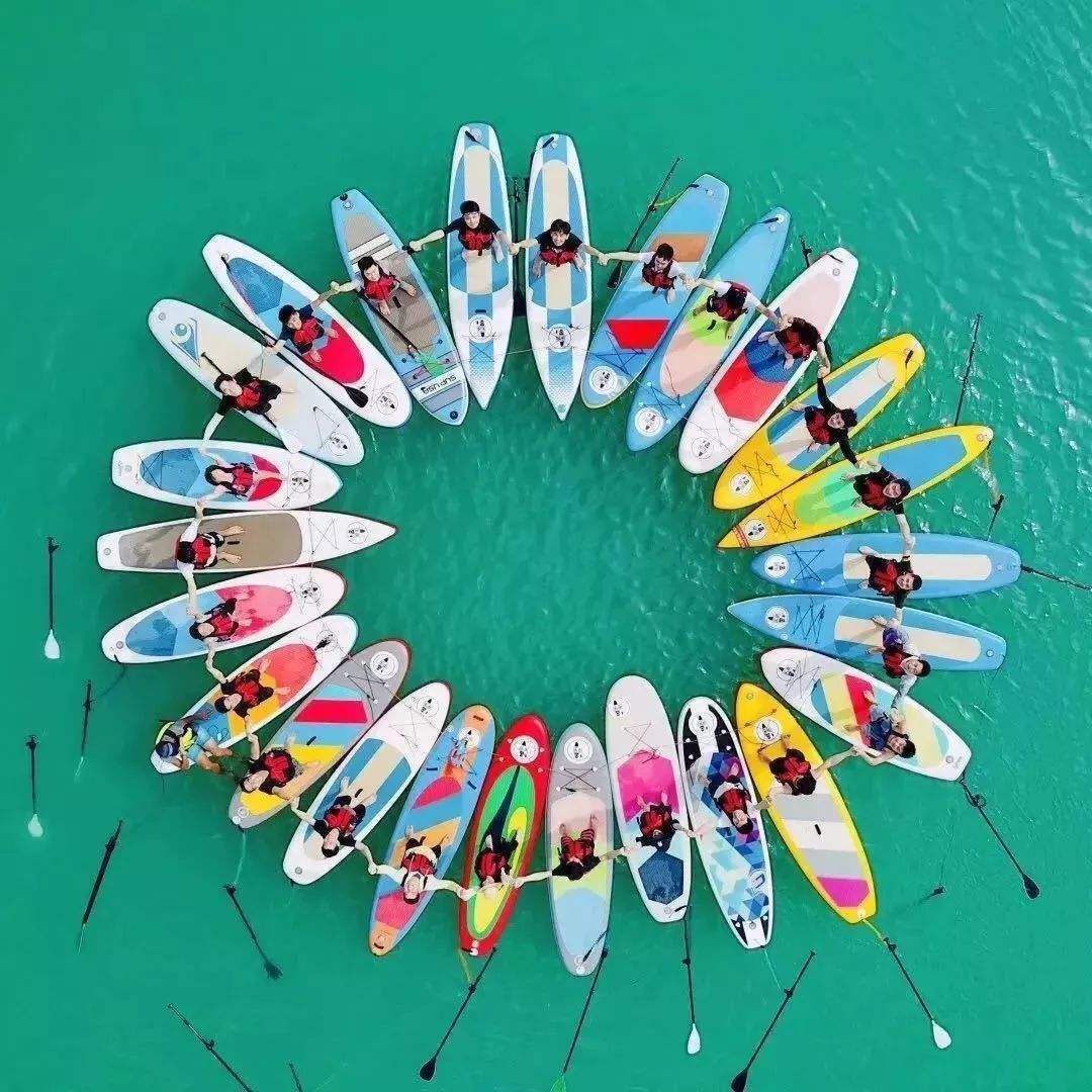 作為一個經(jīng)典的水上團(tuán)建活動,可以在湖里,河流、也可以在海上,而槳板團(tuán)建活動的真正魅力在于,可以創(chuàng)造無窮的玩法,沖浪、對戰(zhàn)、接龍、瑜伽等!