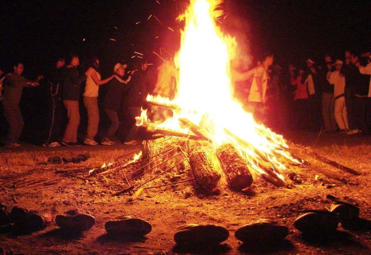 后來,人們外出打獵滿載而歸,互相慶祝獲得了豐厚的戰利品,在用火烤熟食物的過程中,便互相拉手圍著火堆跳舞以表達自己喜悅愉快的心情,這種歡慶的形式一直延續到今天,就形成了篝火晚會。